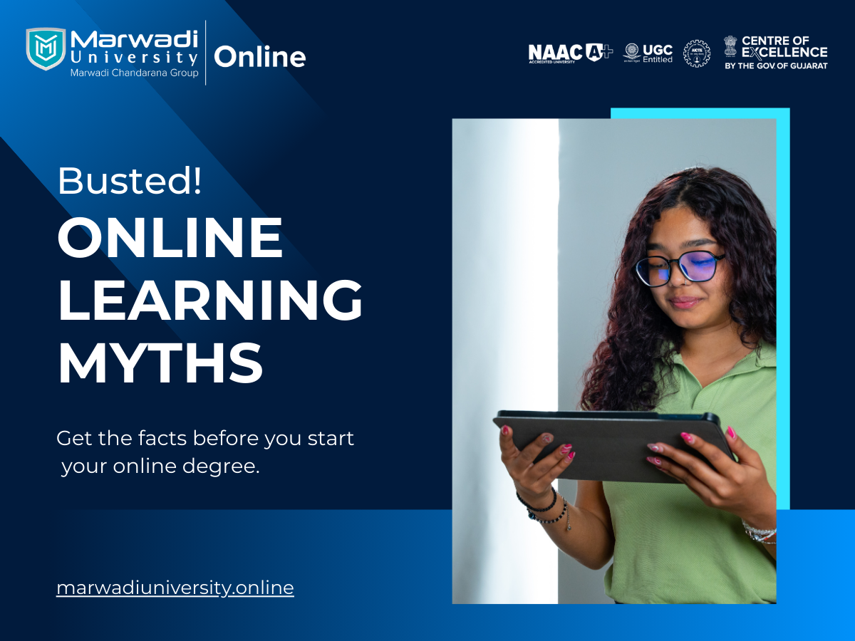 In recent years, online learning has become a major part of education worldwide, changing how students access knowledge. At Marwadi University Online, we believe in providing quality education that fits the needs of modern learners—anytime, anywhere. However, even with its growing popularity, many myths still surround online learning. These misconceptions often discourage students or parents from giving online courses a fair chance.